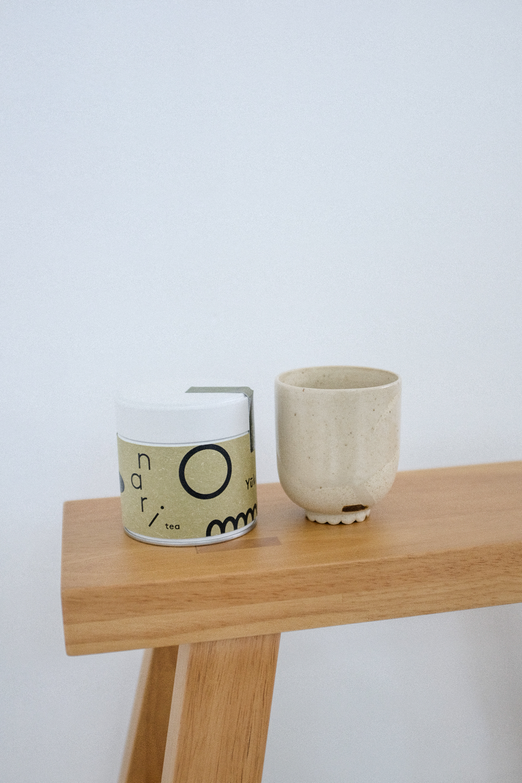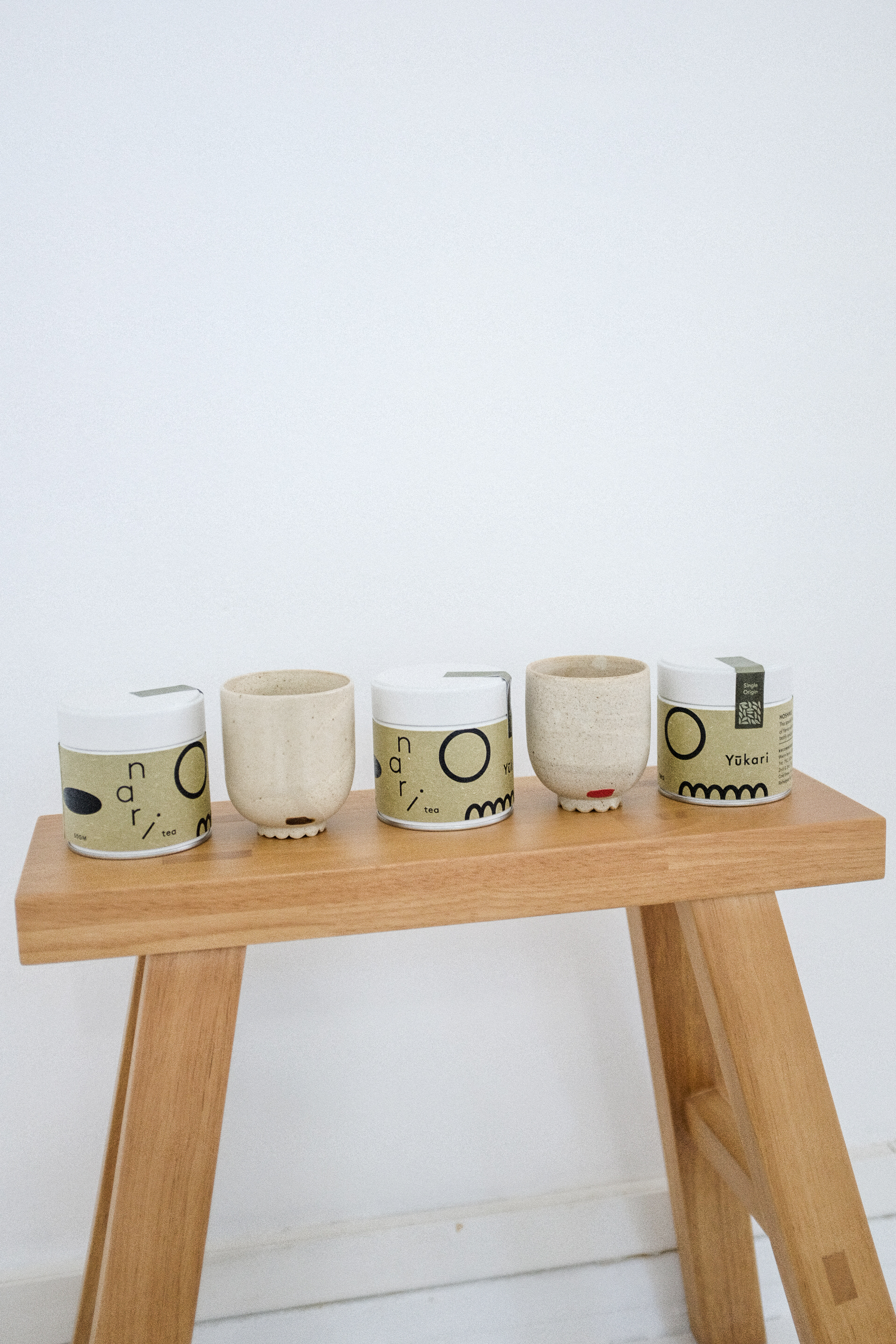 Limited edition of a Yūkari ceramic tea cup and a special blend of Nari green tea HOSHIKO.
